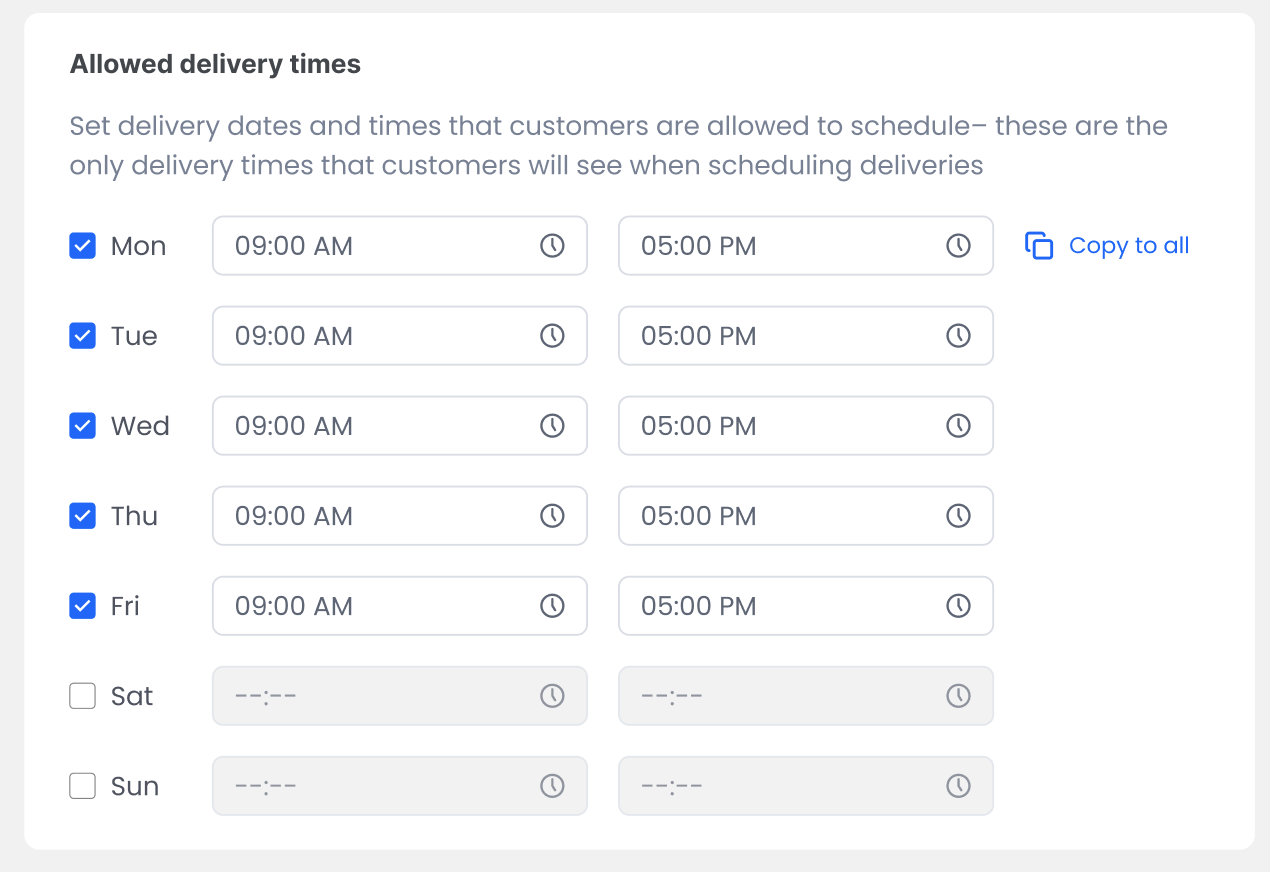 Allowed delivery times.